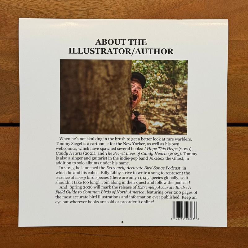 - Artistic AND accurate: the perfect gift for any bird lover. - Sunday-start calendar (by popular demand!) - Pages are 12” x 12” (24” x 12” total size when hung on wall) - Printed in the USA on high quality 100# paper stock with high gloss coating © 2024 Tommy Siegel Comics LLC