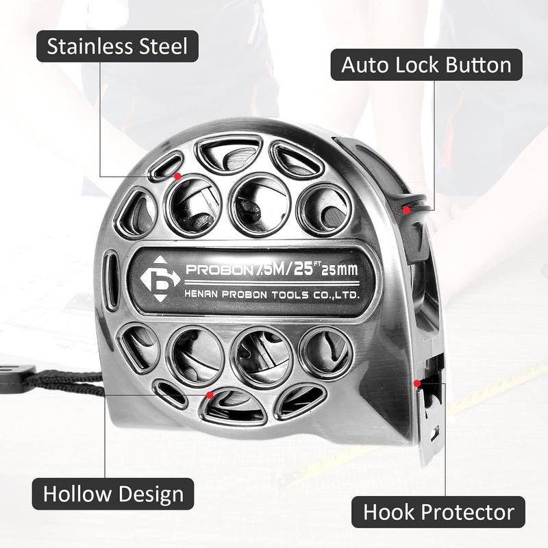 Washable Material: The tape measure features a hollow design and is made of an ABS plated shell, a nickel-plated tape, and a stainless steel core. If the tape measure falls into water, dust, oil, or mud, you can simply wash it with water without damaging it (make sure to dry it thoroughly).