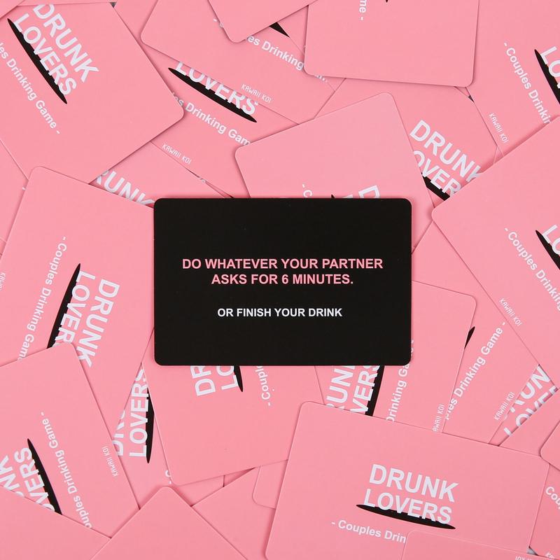 "DRUNK LOVERS" is a perfect drinking game for couples. The game aims to enhance intimacy between you and your partner. With 54 exciting, fun, and daring cards, it will be a memorable night.