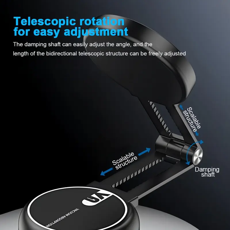 ✔️【 Adjustable and Telescopic Design】 Equipped with an updated flexible spindle telescopic structure design to support a variety of viewing angles. Compared with ordinary car phone holders, XO provides more viewing options and uses a vacuum suction cup design, so you don't have to worry about glue staining the car. Just have fun driving.