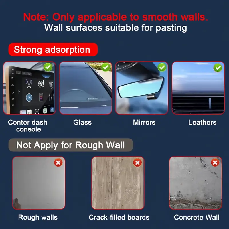 ✔️【Double Side Phone Holder】 This magnetic vacuum bracket is suitable for most scenarios. The vacuum adsorption surface can safely firmly attached the phone on any smooth surface, such as cars, mirrors, walls, glass, kitchens. The metal surface can be adsorbed on iron metal, such as gyms, fitness equipment, refrigerators, etc. No matter where you want to go, you can easily carry it to navigate, record or watch videos, etc.