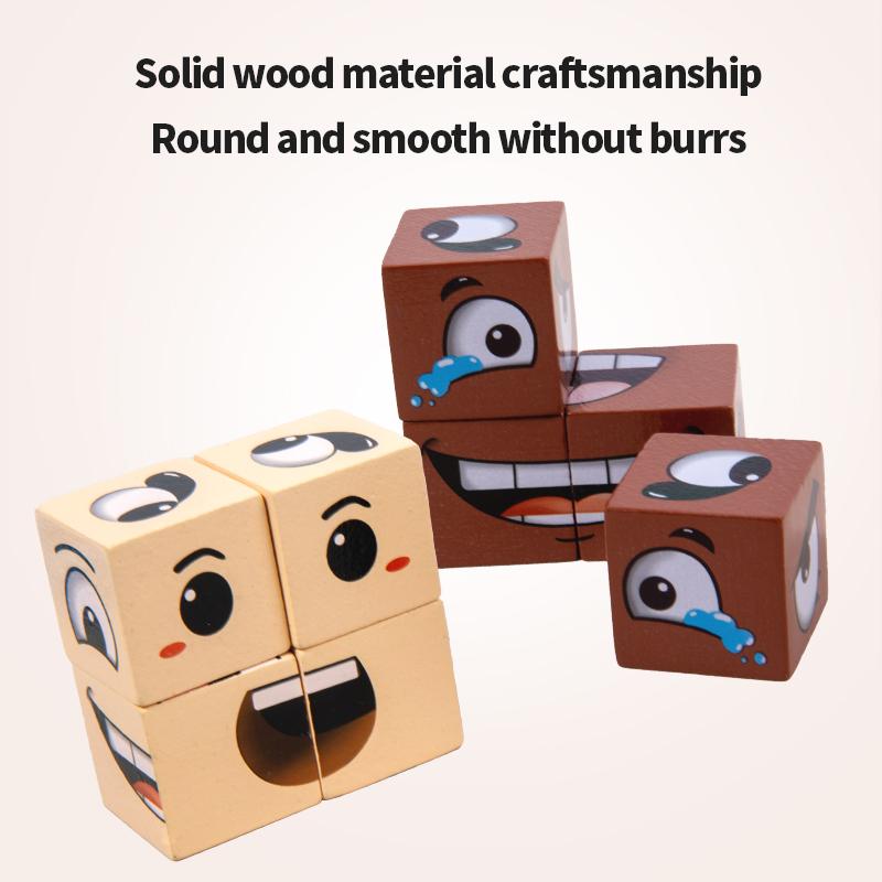 Home / Best Sellers / Face-Changing Cube Building Blocks Wooden Expressions Matching Block Board Games for Family Night Puzzle Games