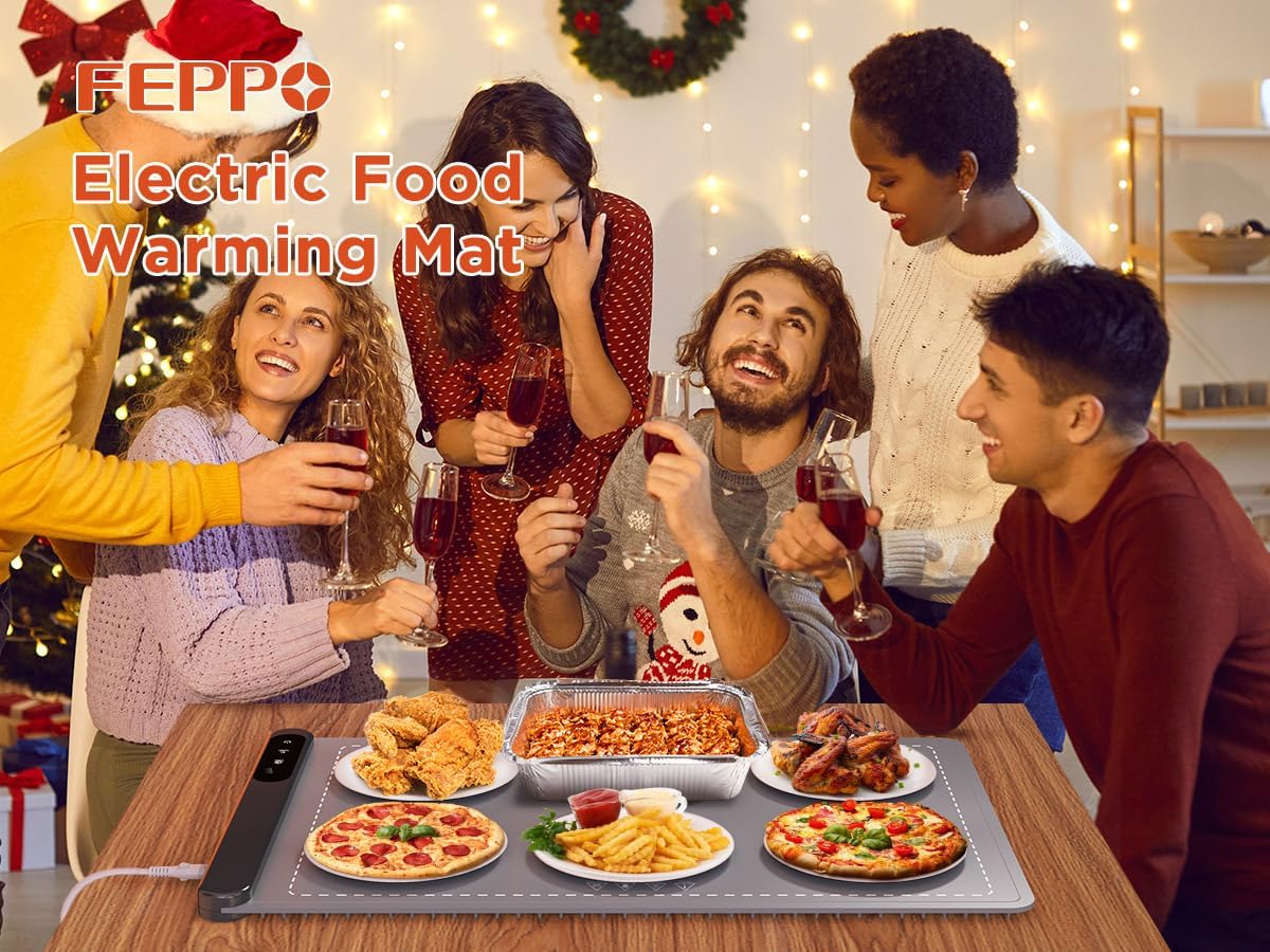 FEPPO Food Warming Mat, Upgrade High-tech Graphene Heating Film, Fast Full Surface Electric Warming Tray with 6 Level Adjustable Temperature and 6 Hours Timer